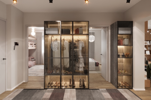 A megérkezés elegáns kialakítása egy olyan tér, ahol színvonalas elhelyezést kapnak a levélszekrények, a közös képviselő kapcsolattartási anyagai, és alkalmas akár a vendégek várakozására. A helyiség berendezése, jövőbeli funkció: társasházi döntés. Pl: gyermekjátszó, home office, fitnesz.
