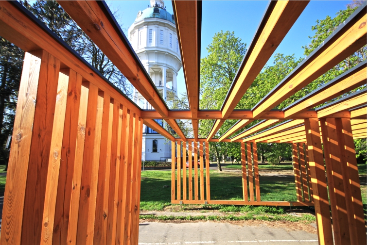 Az alacsony beépítési mutató mellett a telek nagy része zöldfelület. A kerttervezés szempontjai: alkamas az elvonulásra, de akár a közös élményekre, játékra. A társasházi döntés szerint lehetőséget ad a közös kertészkedésre. A földszinti lakások előtt növény és falszakaszok kiépítése a közös területektől való intimitást szolgálja.